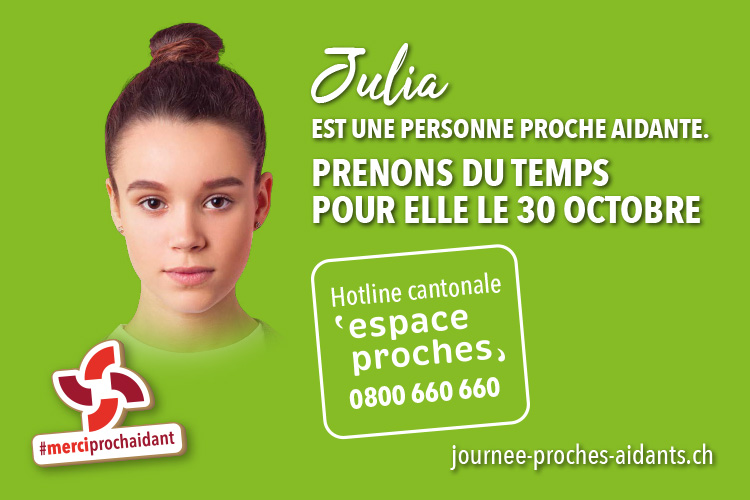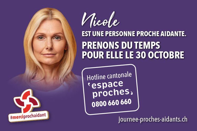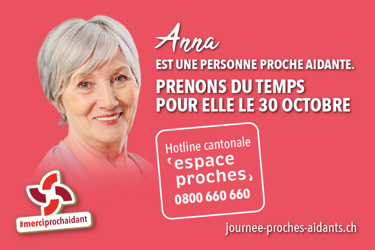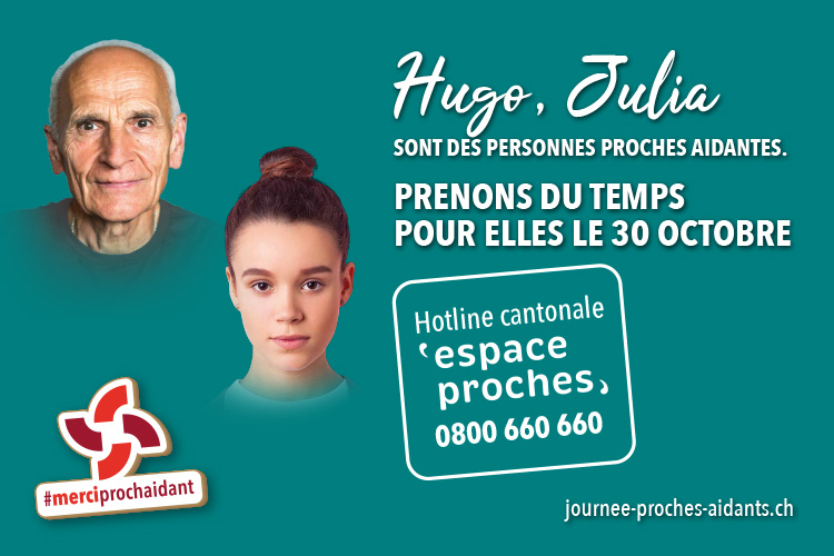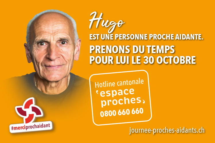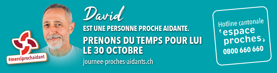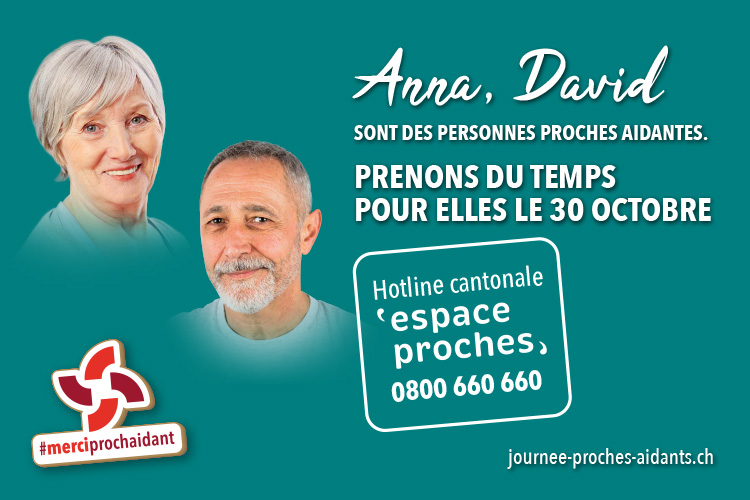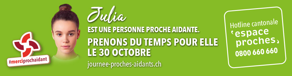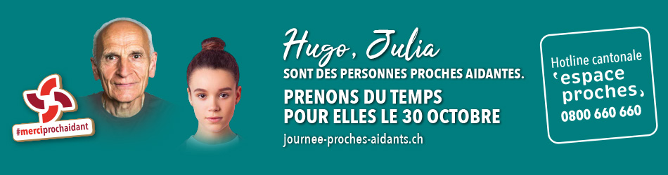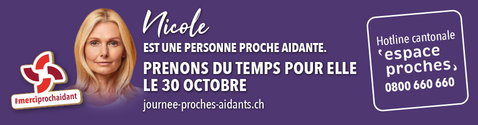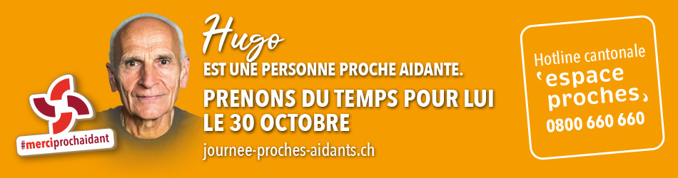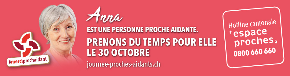 Enfin, cette Journée veut surtout leur dire « Merci ! ». Dans un grand mouvement de solidarité, la campagne de mobilisation vous invite, le 30 octobre, à montrer, vous aussi, votre soutien aux proches aidant·e·s de votre entourage. Sur le site internet de la Journée, vous trouverez des idées de gestes et d’actions: www.journee-proches-aidants.ch/soutenir-un-proche-aidant